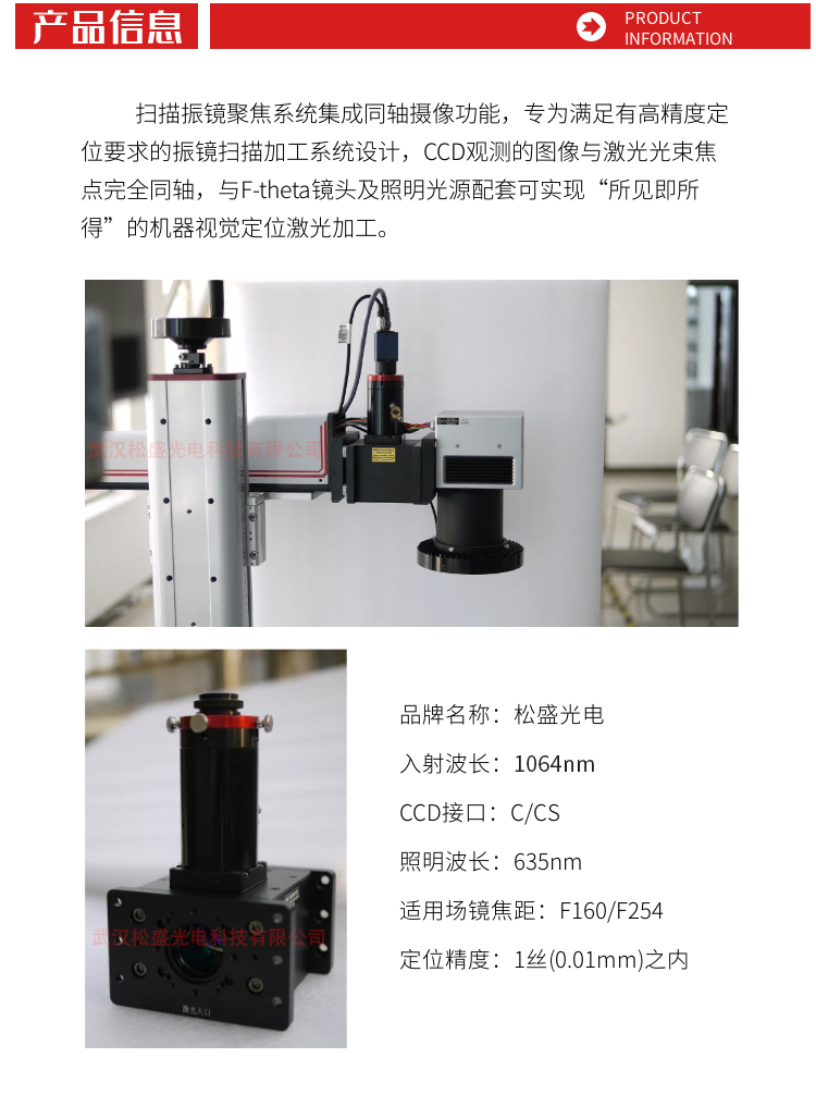 这是最高精度的集成方案。工业相机被直接安装在激光光路内部,通过一块对可见光高反射、对加工激光波长高透射的特殊镜片,将相机的视野与激光光束耦合后,共同通过振镜扫描头输出。这种结构保证了从相机传感器到工件表面的光路与激光光路完全一致,消除了所有因光路分离可能产生的视差和几何畸变。