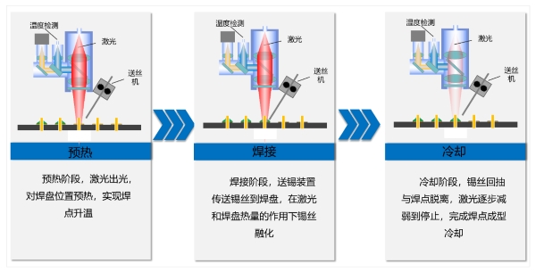通过将锡膏涂覆在焊盘上,采用激光加热将锡膏熔化然后凝固形成焊点,操作比较简单。